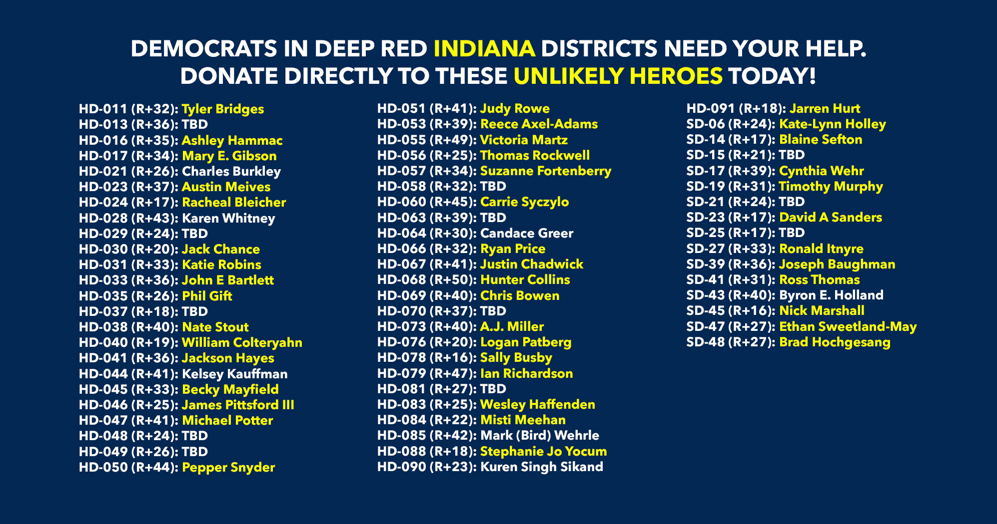 Donate to Democratic candidates running in competitive districts to keep & flip as many seats blue as possible!