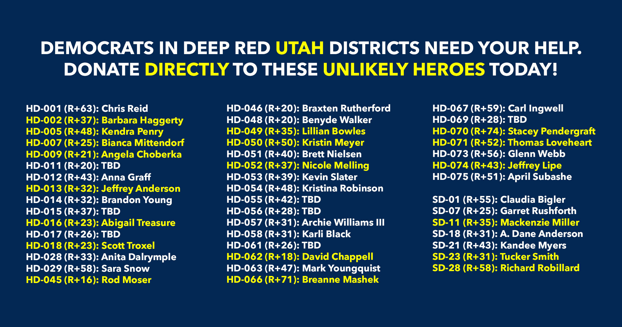 Donate to Democratic candidates running in competitive districts to keep & flip as many seats blue as possible!